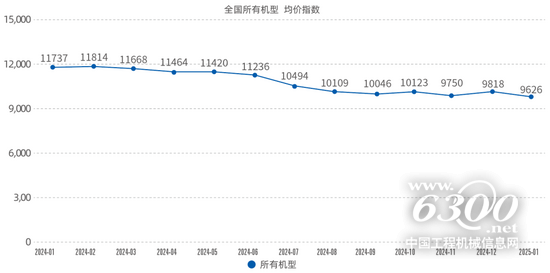 根据上报数据统计计算,2025年1月升降工作平台租金价格指数继续下行,环比下降2.0%,各机型租金价格指数环比走势波动较小,除40m以上机型环比略有上涨外,其他机型都有小幅下滑,下滑幅度最小的为14~16m机型,不足1%。而2025年1月升降工作平台租金价格指数同比下降18.0%,各机型同比租金价格指数均处在下降态势,其中20~24m机型同比降幅最大达到21.5%,14~16m机型同比降幅最小为12.8%。