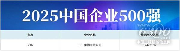近日,中国企业联合会、中国企业家协会联合发布 “2025中国企业500强” 榜单。三一集团荣列第216位,稳居工程机械行业第一。